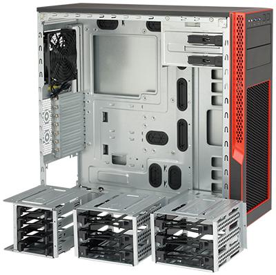 2. Removable 3.5” and 2.5” HDD/SSD cages with tool-less trays for up to 10 drives
